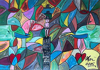 At the age of 24 he began to use colours in an abstract manner for the first time. At that time he studied drums at the conservatory in Graz and at the same time he drummed in several dance bands, rock and funk bands. He tried to paint rhythms by recording them on music cassettes and trying to realize them in a colour expressionistic way. All the non-representational works created during this period were the expression of a holistic paradigm shift in the life of the artist.
