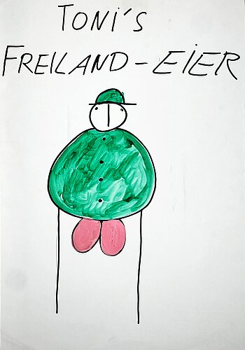 When Poier entered the cabaret stage in 1995, he was soon considered notorious. Dadaesque objects, drawings and paintings were not least responsible for this. His first cabaret program "Heaven, Ass and Garden Gnome" was an "experimental program", which he constantly changed to try out new things. The positive reactions of the audience to his Dadaesque anti-art and his Dadaesque drawings - such as the "Transport Rabbit", the "Cat in Cross-Section", the "Deer Incarnation" or the "Egg-Dog Grenade with Two Explosive Heads" - made them a fixed component of future programs.