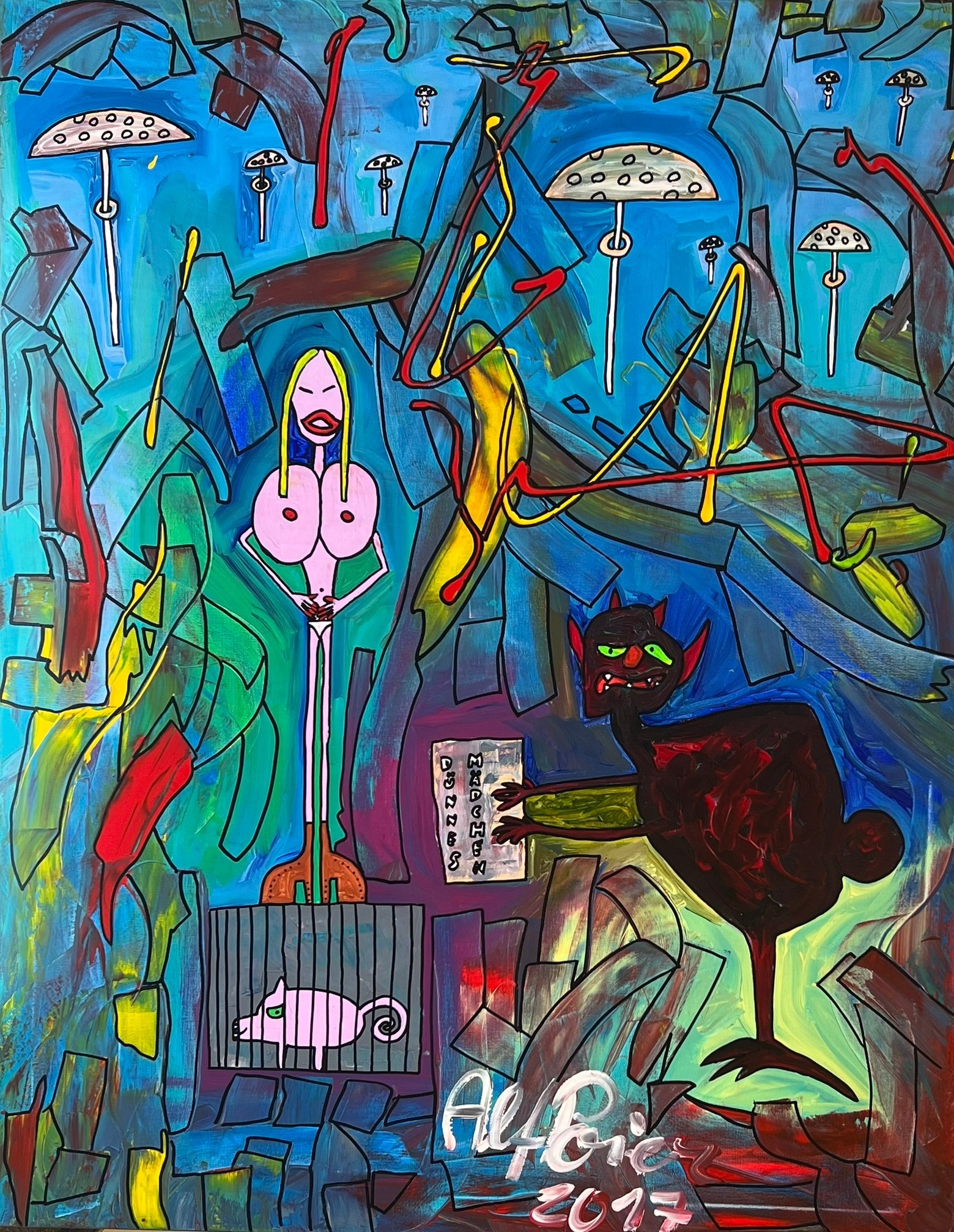 Der dadaistische Teufel hat sich das dünne Mädchen bereits auf die Liste geschrieben, 2017, 150 x 120 cm, acrylic on canvas