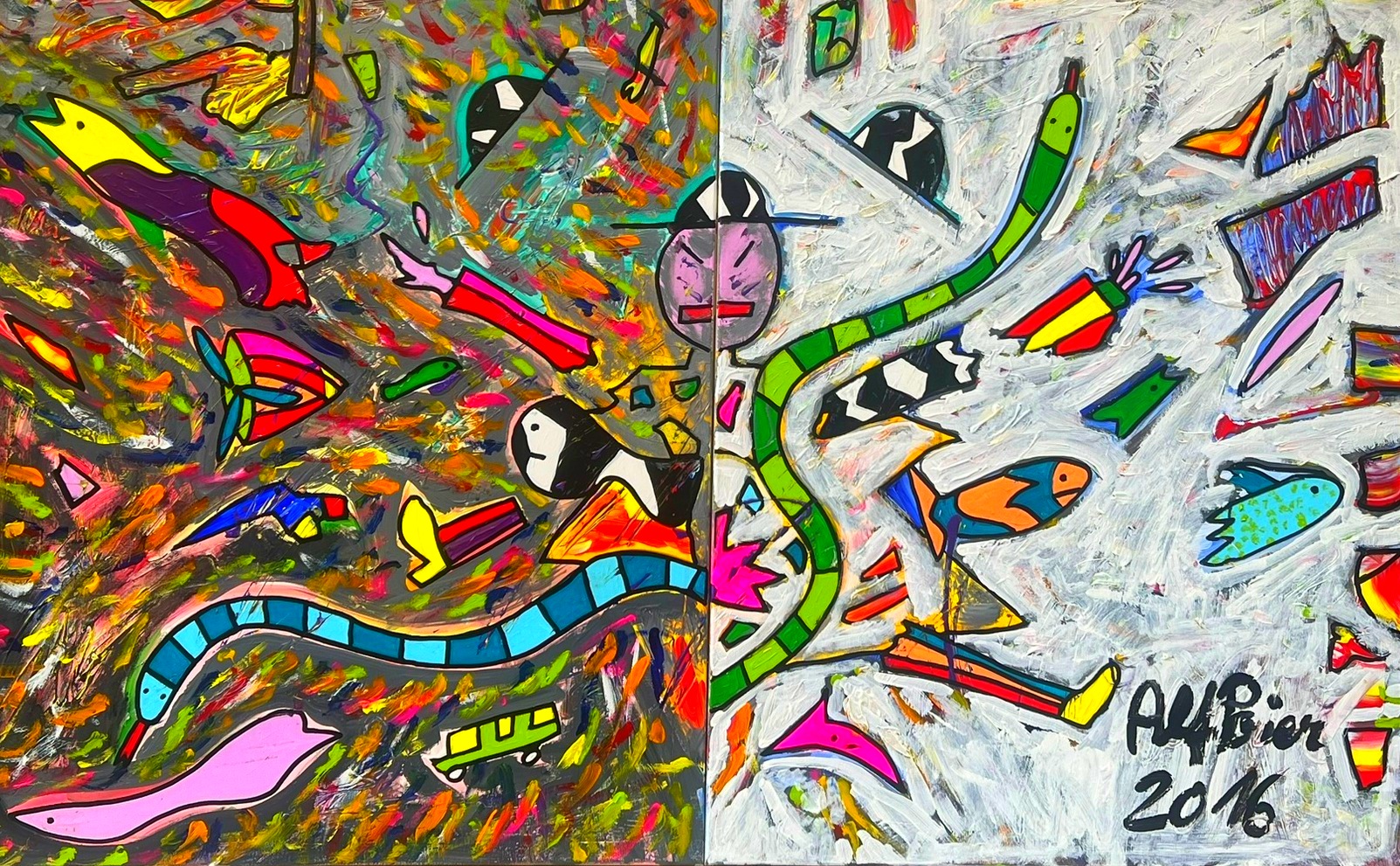 Kopf gegen Bauch, 2016, 100 x (80+80) cm, acrylic on canvas