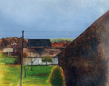 Axel Stadler is interested in objects that are inevitably exposed to the process of aging. In his fine oil paintings, he depicts decaying houses and crumbling walls, old doors with fissures, inoperable machines, rotten trees and desolate wooden fences. These enable a view into the things behind and evoke the curiosity of the beholder. The artist is also in love with landscape, especially with the soft hills of Weinviertel, the meadows and wine-cellars, a world that is still to some degree quiet, where the impact of humans is not too brutal yet.