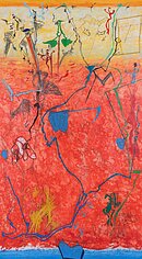 acrylic, graphite, colour pencil on paper
