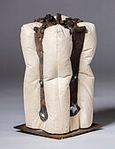 Kasperl experimentiert mit einer Plastik von Walter Pichler