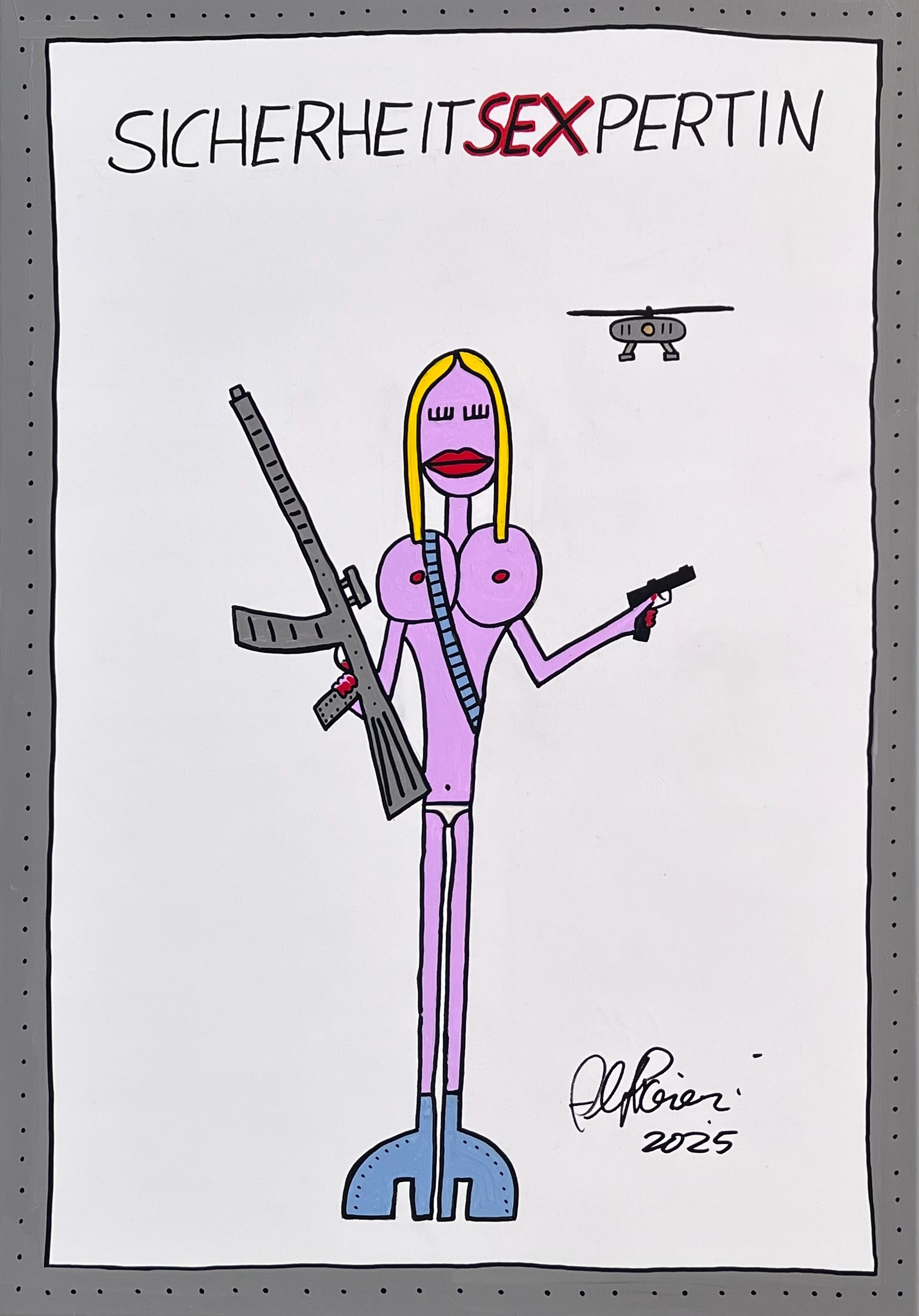 The artist now strikes polarizing color tones in his dadaist paintingworld. Poier once painted his typical und unmistakable stage works for his internationally acclaimed cabaret programs. The contemporary Cancel Culture paintings by Alf POIER reflect the current turbulent times!
